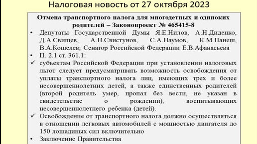 Отмена транспортного налога для многодетных и одиноких родителей