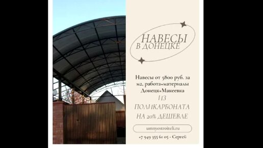 Навес из поликарбоната, металлочерепицы или профнастила Донецк-Макеевка, от 5000 за кв. работа и материалы