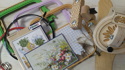 37/23: Все мои пяльцы Нурге/ Три процесса/ Новый набор от Панны/ Новая деталь для моего станка/ Вышивка крестиком/