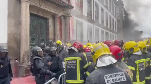 Ничего необычного, просто в испанской Галисии начались столкновения пожарных с полицией. Не стоит беспокоиться, всё в рамках демократии