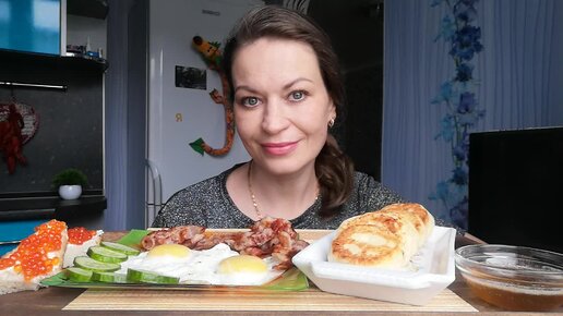 МУКБАНГ ЯИЧНИЦА С БЕКОНОМ/БУТЕРБРОДЫ С ИКРОЙ/СЫРНИКИ/MUKBANG HALK FAMILY ЕДА ОБЖОР