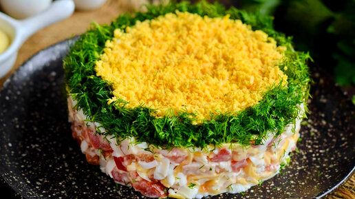 Слоеный САЛАТ с ВЕТЧИНОЙ по рецепту МАМУЛИ! Вкусный САЛАТ на ПРАЗДНИЧНЫЙ СТОЛ порадует ВСЕХ ГОСТЕЙ!