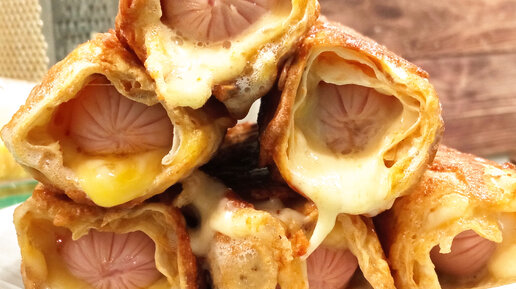 СОСИСКИ в лаваше с Сыром на сковороде