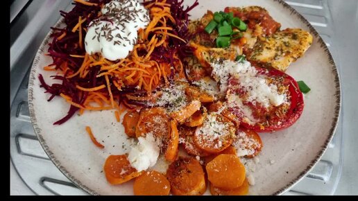 Очень вкусный гарнир из сезонных овощей для похудения. Картофель с помидорами в духовке