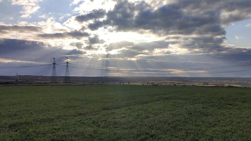 Сумеречные лучи Солнечного света вечер. Дата 24 октября 2023 года. Деревня Яльгелево. Ленинградская область.