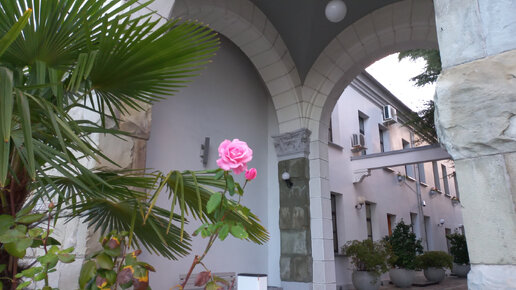ЖД вокзал СОЧИ. Очень курортный, с зелеными южными двориками. Выйдя из поезда, сразу попадаешь в атмосферу южного курорта.