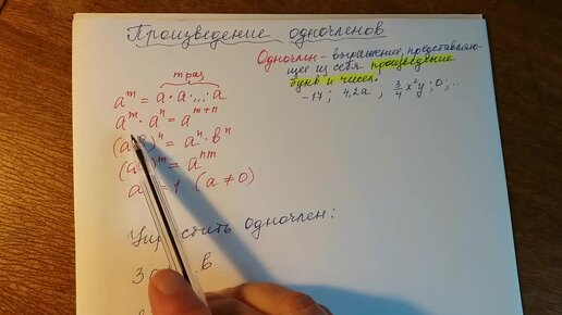 Алгебра 7 класс. Произведение одночленов.