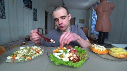 МУКБАНГ СОСИСКИ ЖАРЕНЫЕ / ПИЦЦА / ЯИЧНИЦА / САЛАТ / ВАТРУШКА / Mukbang EATING / ASMR / АСМР #935