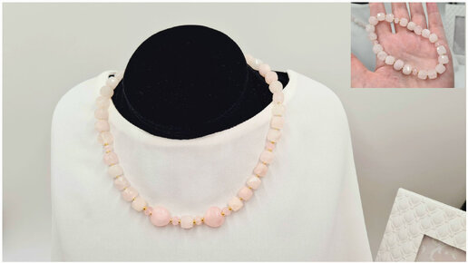 Процесс создания украшений из розового кварца. Чокер и браслет. #браслет #чокер #серьги