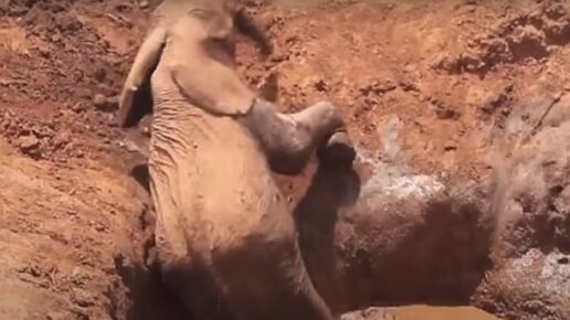 Слоненок застрял в узкой канаве и если бы не неравнодушный мужчина, то беды было бы не избежать. Спасибо, ЧЕЛОВЕК!
