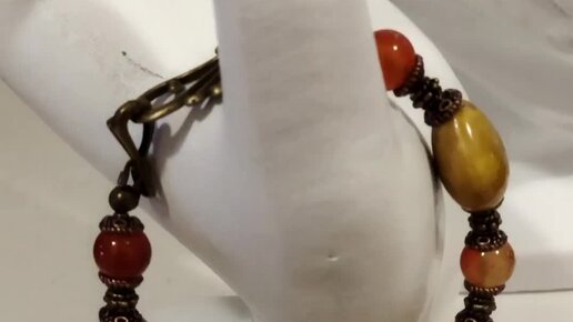 Браслет и серьги из сердолика и керамических сердечек.фурнитура бронза