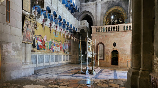 Я зажигаю общую благодарственную свечу, по нашей традиции, от Благодатного Огня в Храме Гроба Господня. Людей почти нет