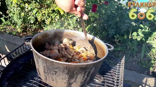 Баранина с овощами в казане на мангале