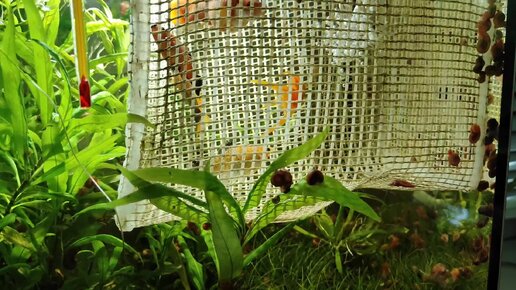 26.10 Отсадник для беременных самок. Пересадка малька меченосцев вильчатым в большой аквариум.
