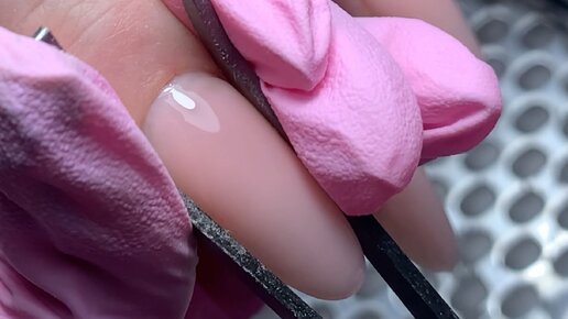 Наращивание очень коротких ногтей на типсы / блестящий нюдовый маникюр
