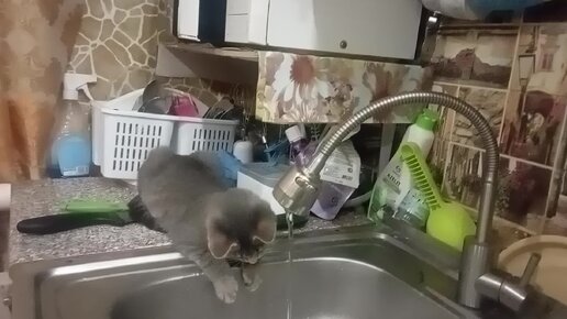 Котëнок водолаз. Стоит только услышать звук льющейся воды, он тут как тут