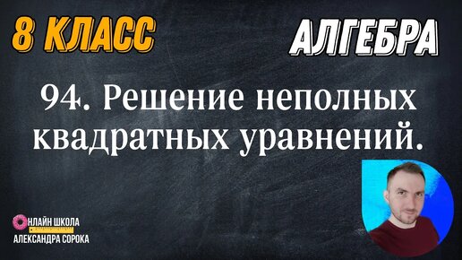Урок 94. Квадратные уравнения. Решение неполных квадратных уравнений (8 класс)