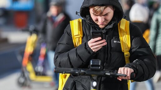 Видео: курьер на полном ходу влетел в трамвай. Мужчина отделался испугом