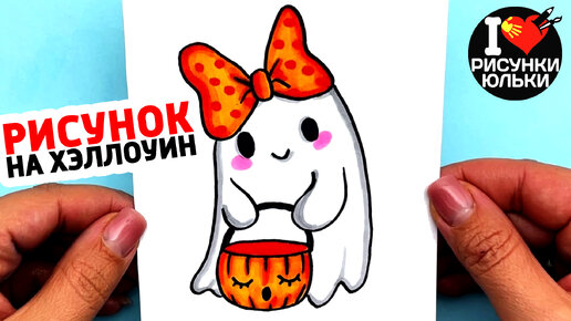 Рисунок на ХЕЛЛОУИН _ Как нарисовать ПРИВИДЕНИЕ просто и мило _ Рисунки Юльки