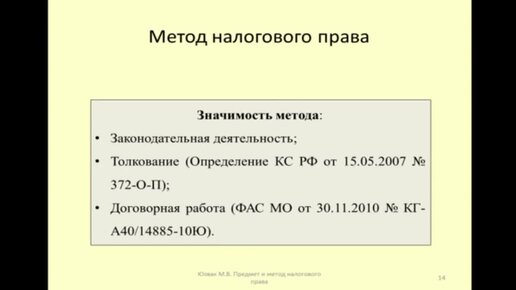 Практическое значения метода регулирования в налоговом праве