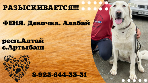 Пропала собака ! ФЕНЯ , Алабай , респ. Алтай , с. Артыбаш