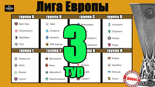 Лига Европы. 3 тур. Таблицы. Результаты. Расписание. Славия – Рома, Ливерпуль - Тулуза.