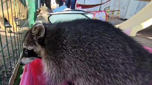 Десятки игрушек, а нужна именно эта бутылочка! Еноты в зооцентре Дино