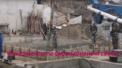 Фундаментные железобетонные плиты и подбетонка по буронабивным сваям. Бурение и бетонирование свай.