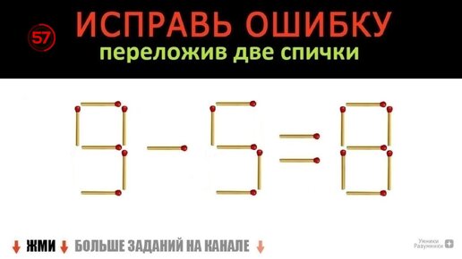 Головоломка со спичками 🥢 9-5=8 😎 Получи верное равенство только переложив две спички 🥢 Задание для математиков