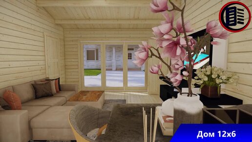 Брусовой дом с двумя спальнями 12 х 6 м