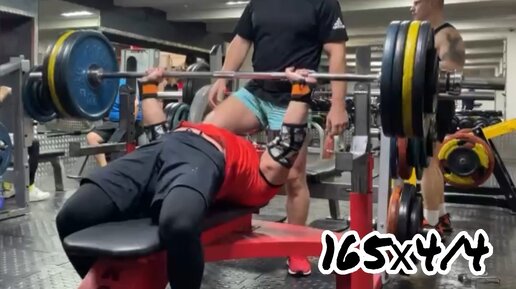 Жим лёжа. Евсеев Михаил. 165 кг. Программы тренировок по жиму штанги лёжа в описании к видео и в шапке профиля.