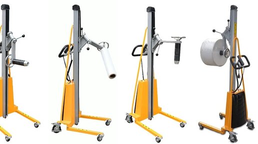 Как работает подъемник рулонов с ротатором (манипулятор с держателем рулонов)