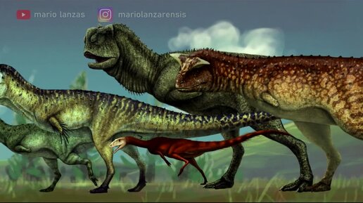 Абелизавриды - грозное рогатое хищное семейство динозавров. Размеры.