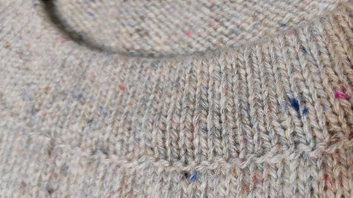 Мужской джемпер из твида на вязальной машине Нева-5. Обработка горловины и плечевой шов