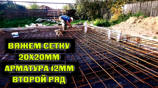 Вязка сетки одним рабочим дом 10х8. Сетка 200х200мм арматура 12 мм. Самострой .