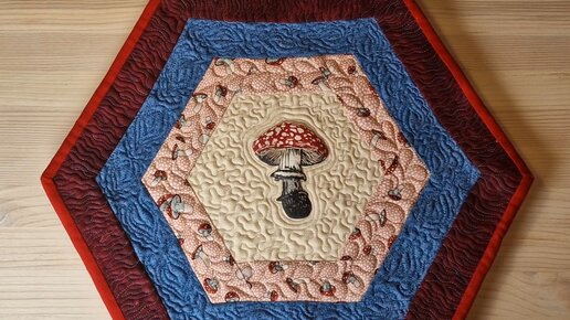 Лоскутная салфетка "Мухомор".Сборка, стежка.