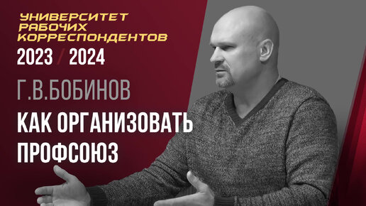 Как организовать профсоюз. Университет рабочих корреспондентов. Г. В. Бобинов. 12.10.2023.