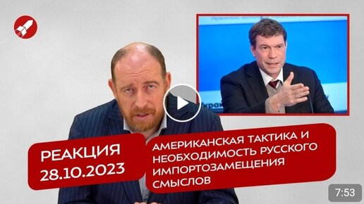 Реакция 28.10.2023 Американская тактика и необходимость русского импортозамещения смыслов.