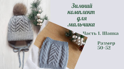 Теплая зимняя шапка с отворотом для мальчика спицами Размер 50-52