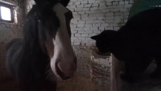 К Шоколаду пришёл в гости кот. Так-то Шоколад не против, лишь бы гости овёс не ели))