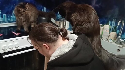Бозяка-пушистяка дрессирует двуногих и лазает на плечи