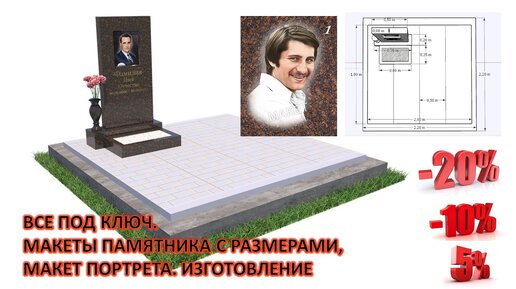 Все под ключ. Электронный макет на памятник и портрет. Фундамент ритуальные плиты.