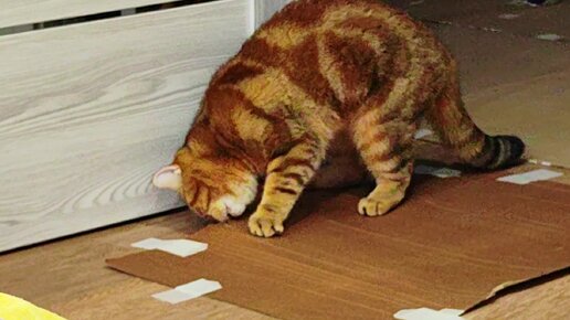 Загнал под картон игрушку и достаёт её. Порвал картонку, но своего добился.