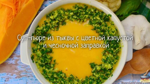 Тыква прекрасно подходит для приготовления супов-пюре. Суп-пюре из тыквы с цветной капустой и чесночной заправкой