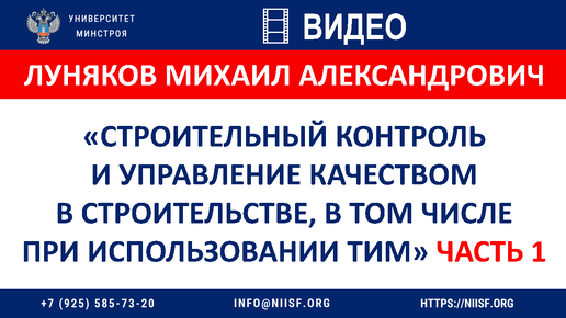 ВИДЕО. Луняков М.А. Строительный контроль и управление качеством в строительстве, в том числе при использовании ТИМ. Часть 1