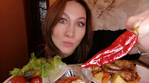 МУКБАНГ/НОЖКИ ЦЫПЛЕНКА🍗С КАРТОФЕЛЕМ, СОЛЕНЬЯ🍅🥒🌶️🌶️🌶️/СТАЯ СОБАК НАПАЛА НА ЛЮДЕЙ В САЛАВАТЕ😱