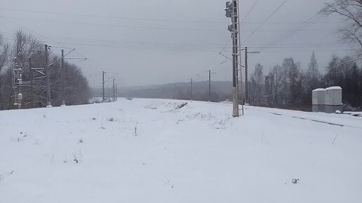 2ТЭ116-1199. Идёт по неправильному пути с думпкарами на север. Приветливая музыкальная бригада. Снегопад. Петрозаводск.