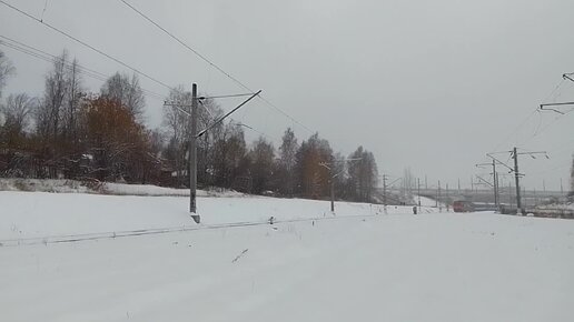 ЭП1-045. Идёт в снегопад на юг с поездом Арктика. Петрозаводск