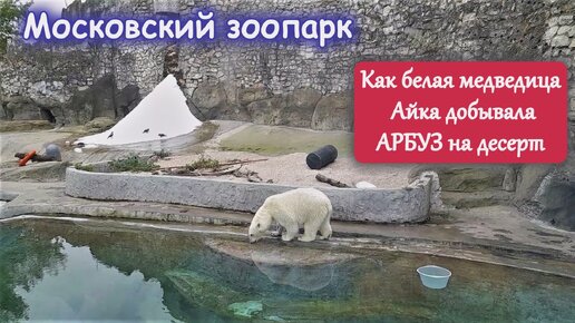 У белой медведицы Айки арбуз на десерт. Показательное кормление в Московском зоопарке