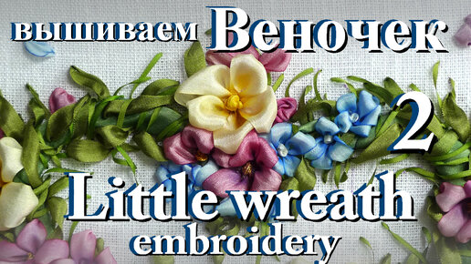 Вышиваем лентами ВЕНОЧЕК 2 ЧАСТЬ / LITTLE WREATH embroidery